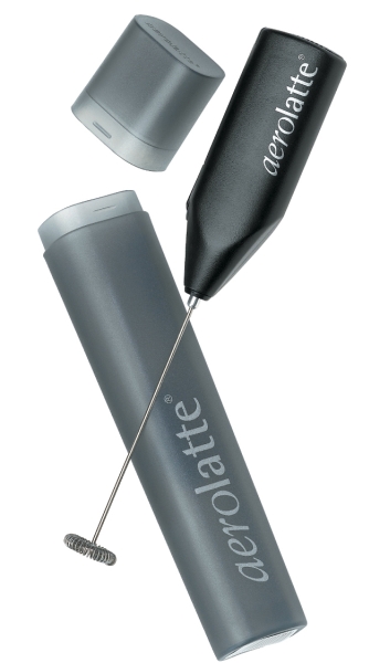 The Aerolatte Milk Frother is the original steam-free milk frother. It is easy to use and works directly in a mug or glass to transform heated milk into a thick foam in less than a minute. Also great for mixing powdered drinks, salad dressings, scrambled eggs, and more. Convenient and lightweight; comes with durable travel container.